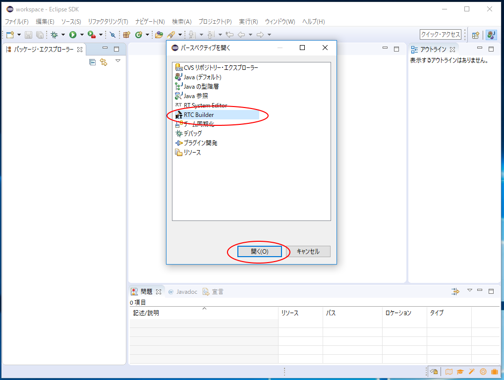 RTCビルダのパースペクティブを開いてプロジェクトを開始