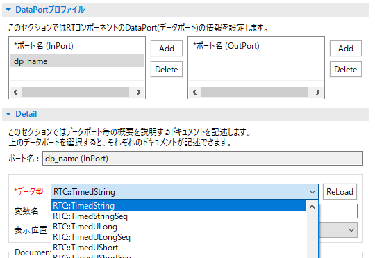 データポートのデータ型は、''Detail''でデータ型を選択してください。